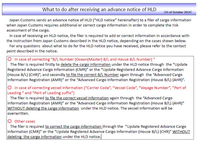 Japan Customs Recently Issues More of "HLD" Notices To Filer